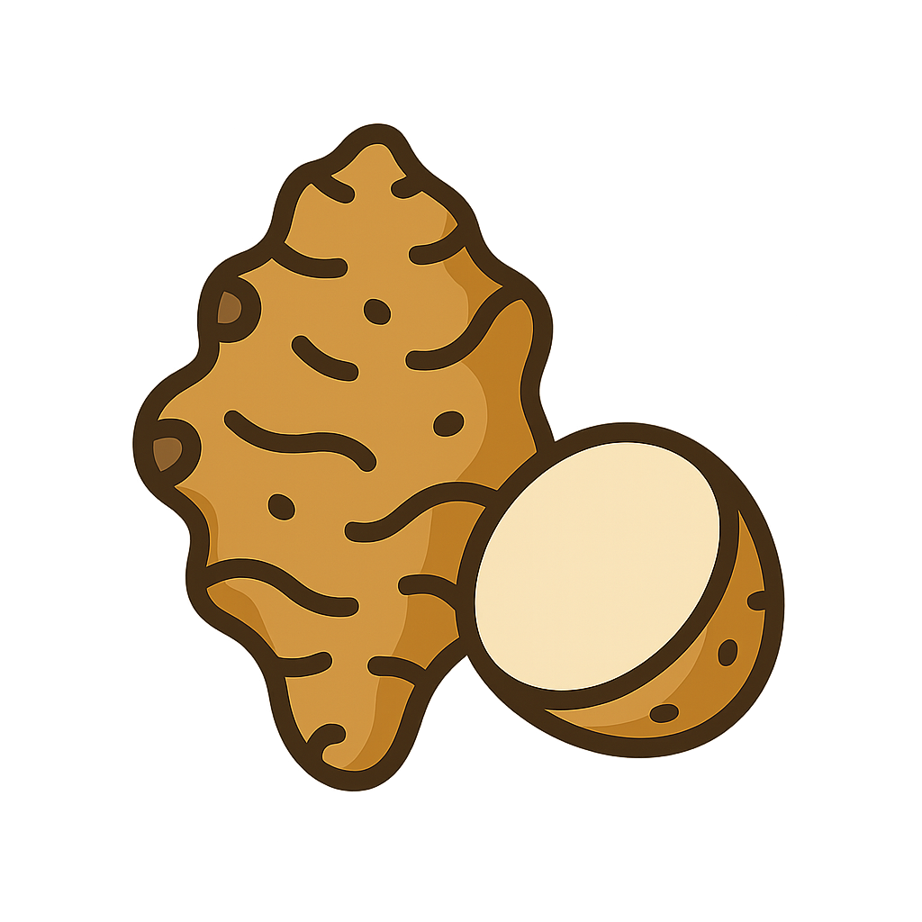 Native to tropical Asia; root and leaves used in many cuisines.